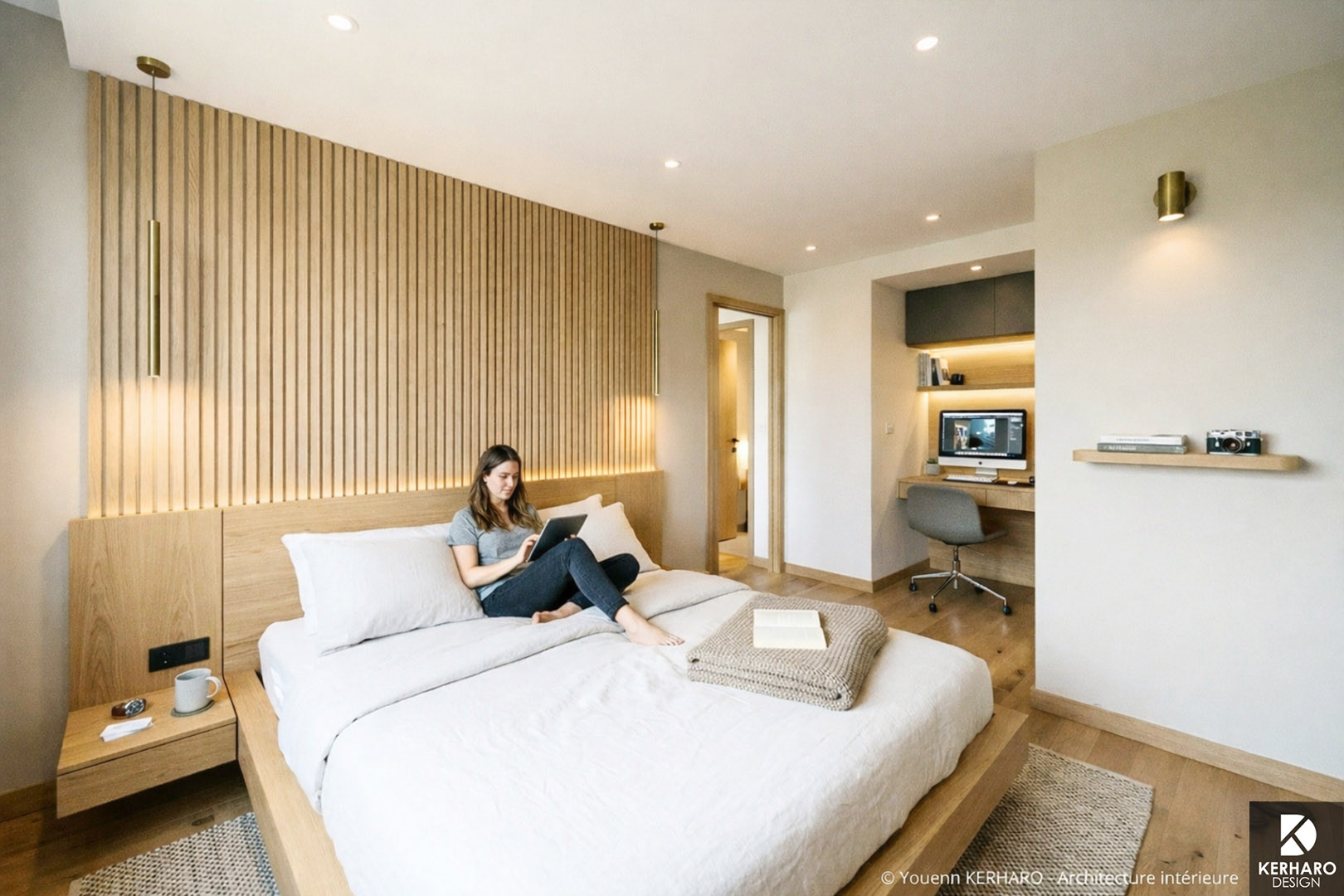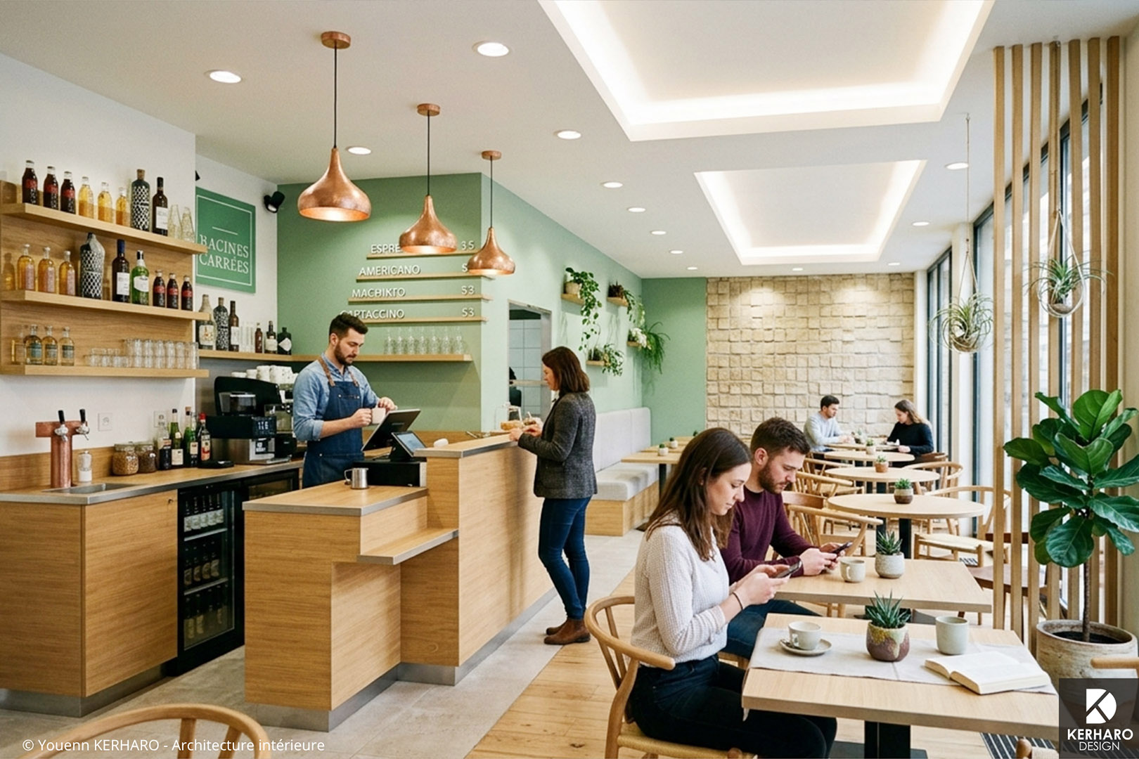 Fondée par Youenn KERHARO, architecte d’intérieur certifié par le CFAI et diplômé de l’École Boulle, l’agence développe des projets sur mesure, avec une attention particulière portée à l’identité du lieu, à l’usage, à la conformité ERP et à la cohérence globale du projet.